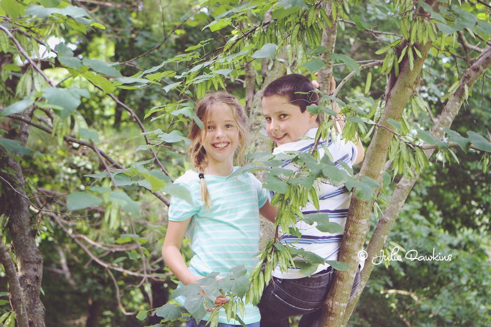 Mama knows her kids. She said put them in a tree where they belong and viola perfect joyous smiles :)